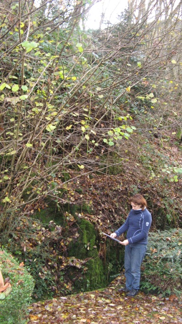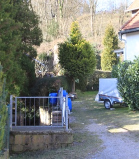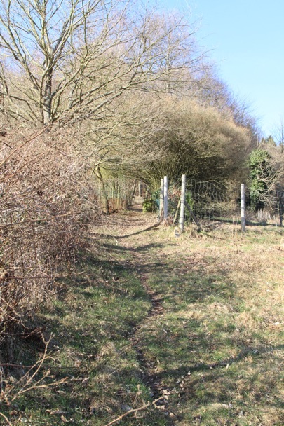 Dem offiziellen Stadtplan folgend lässt sich der Beginn des Weges auf keinen Fall finden, da er ab einer ganz anderen Stelle, nämlich ab dem Kreuzgrundweg verläuft. Dort ist jedoch kein Wegegrundstück vorhanden und ein Weg ohnehin topographisch nicht möglich, da der Bach und der anschließende Steilhang Hindernisse bilden.